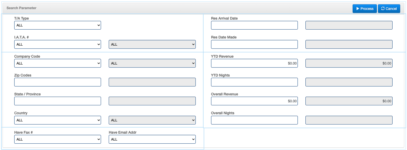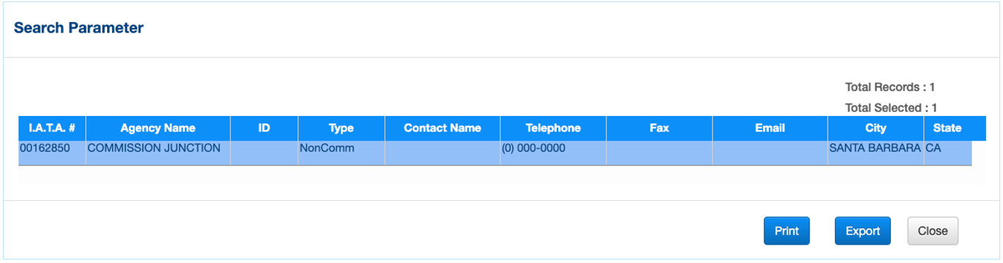 This collection of data is provided for the Travel Agent/Agency. Examples of some available filters are as follows: IATA#, Zip Codes. The created list can be printed or exported to allow for possible label printing or email transmission.