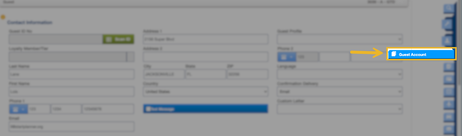 1. In the reservation, click Guest Account from the tools panel on the right-hand side.