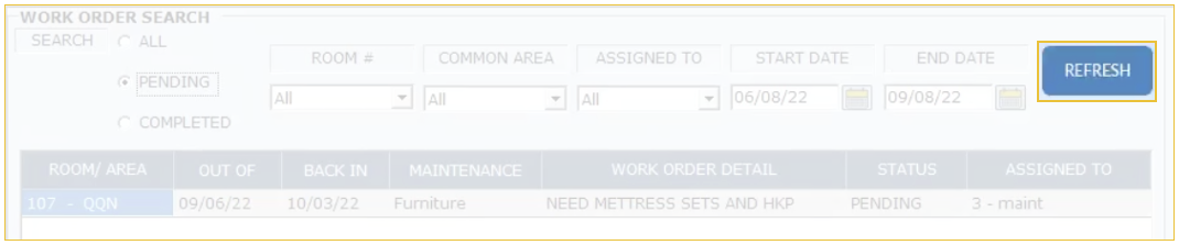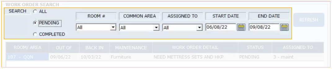 By default, all pending work orders for the current date will display. But you can narrow down the search.