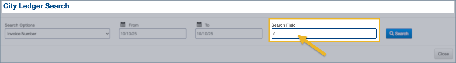 4. Run the Search. Click Search to display matching City Ledger results based on the selected criteria.