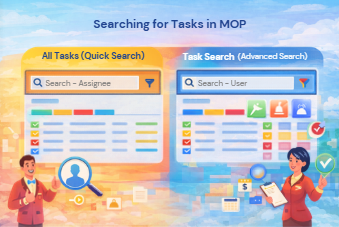 MOP provides multiple ways to locate tasks quickly so supervisors and staff can review assignments, monitor progress, and investigate activity. You can search for tasks in two locations: