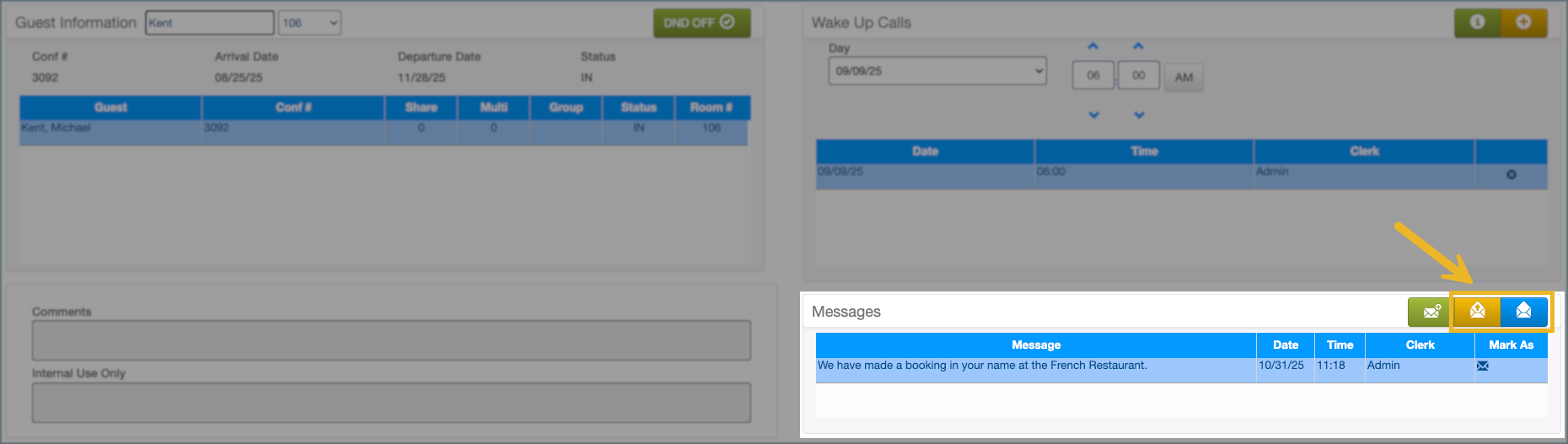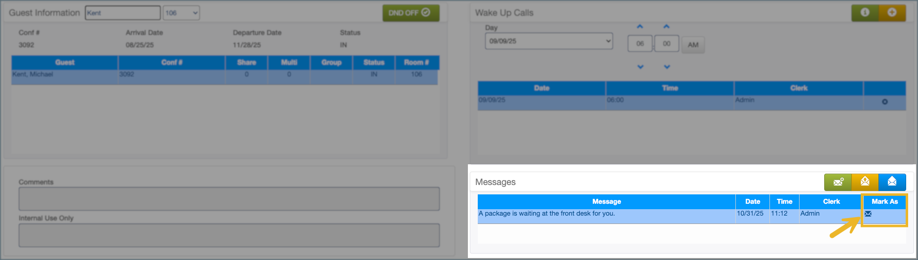 5. To mark a message as read, click the envelope icon in the Mark As column.
