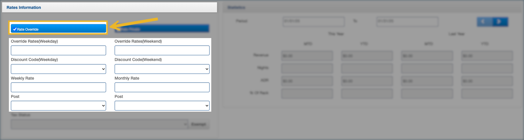 3. Check "Rate Override".