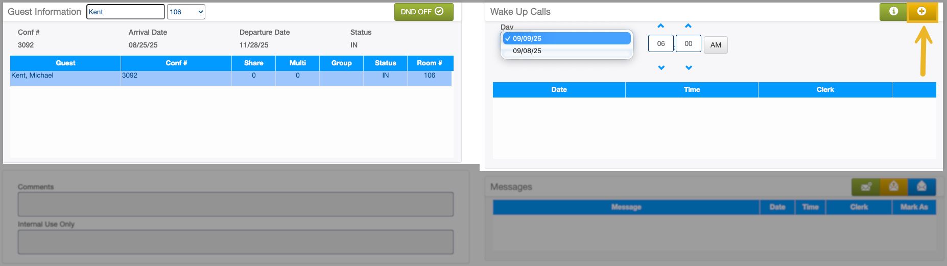 Watch Video When a guest requests a morning wake-up call, you can schedule it directly through the PBX interface in Visual Matrix Cloud. This feature helps ensure timely guest wake-ups, improves guest service, and integrates seamlessly with your property’s phone system.