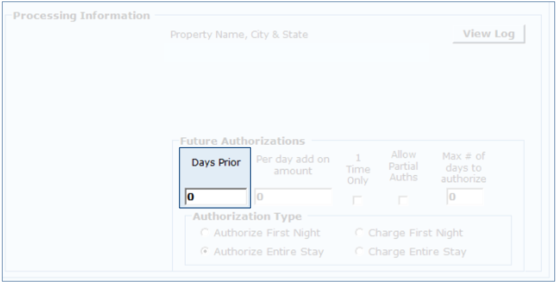 1. Enter here a number of days to authorize incidentals prior to arrival. Enter "0" to disable this option. An authorization prior to the day of arrival will be done during the night audit.