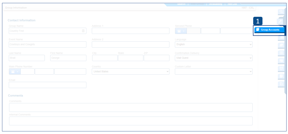 1. On the right side, click Group Accounts to access the group’s folio settings.