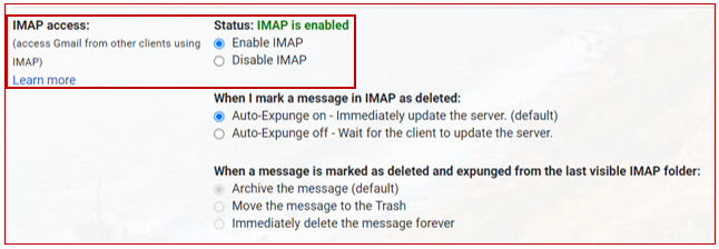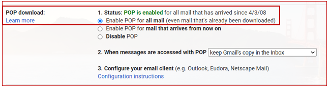 4. Make sure that Gmail's POP and IMAP status are enabled.