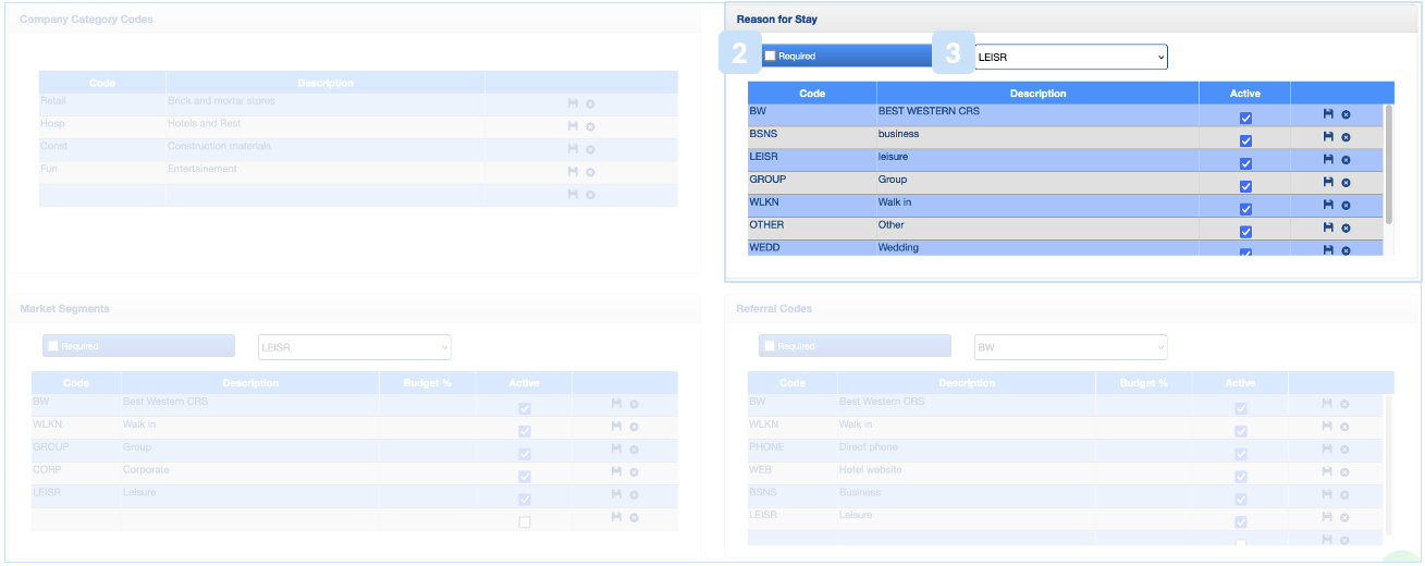 2. Check the "Required" box if you wish to mandate the selection for the Reason for Stay for each new reservation.