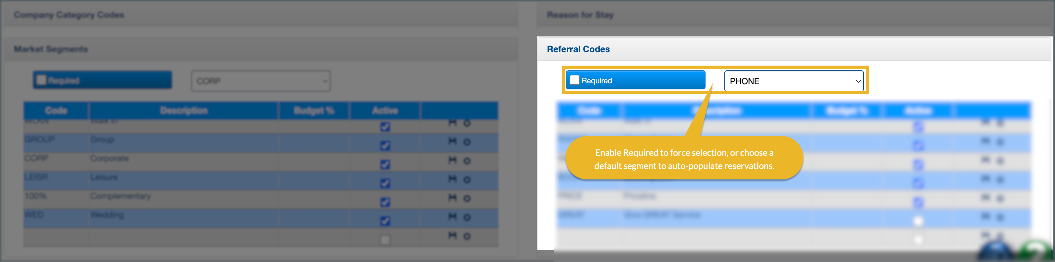 - Check Required to force users to select a referral code for every reservation
