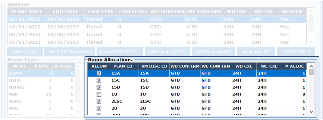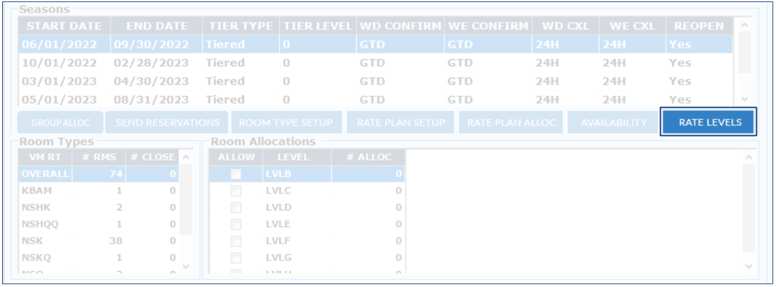 1. In the "Room Allocations" section, click on "Rate Levels".