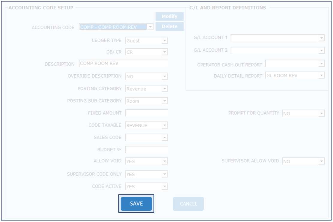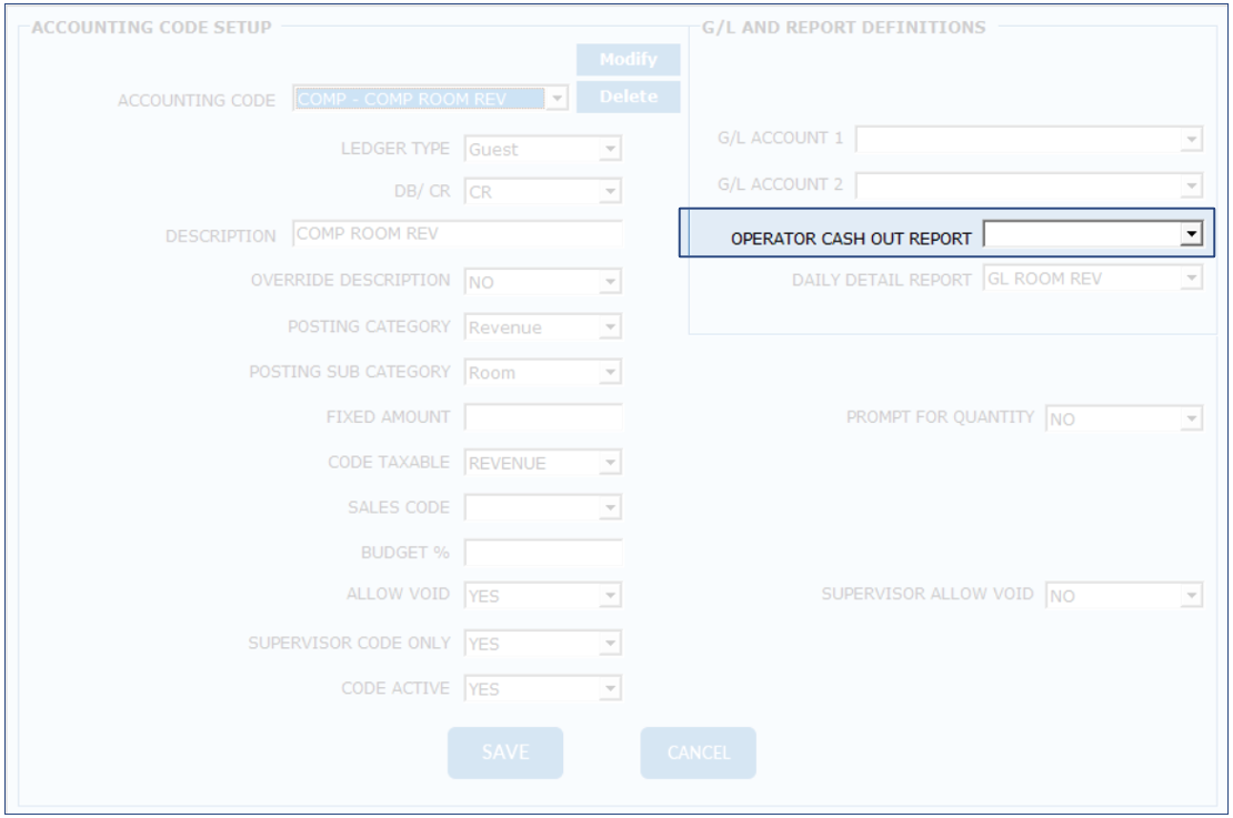 17. Although this code is a Credit, the "Operator Cash Out Report" field has to stay blank.