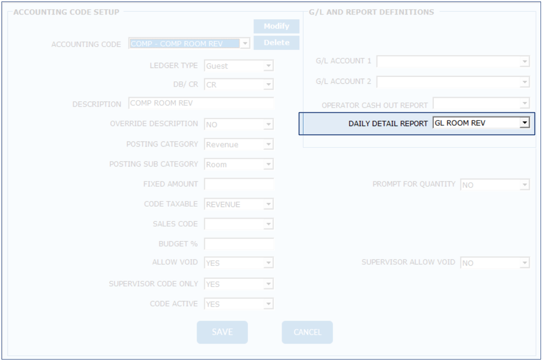 18. Select "GL Room Rev" as the Daily Detail Report.