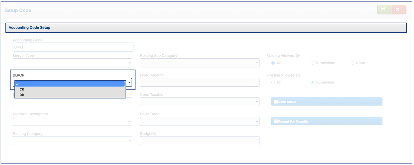 - CR/Credit: Code is a negative number, aka Payment (like Cash or Credit Card Payment).