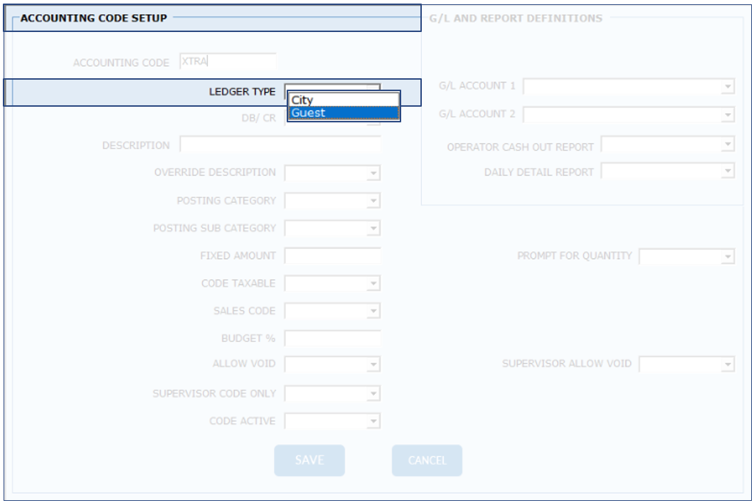 To avoid any City Ledger account creation issue, this choice has been disabled. If a city ledger code is created, it won't be able to save. Please contact our Client Experience team for advice.
