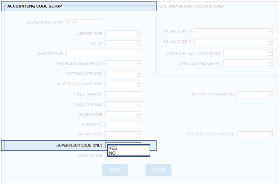 - Select "Yes" to make the accounting code available only to users that have supervisor privileges.