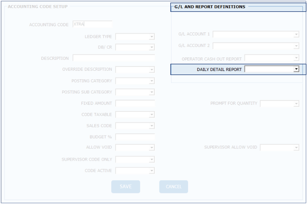 which heading that transactions made with this accounting code will fall under on the Daily Detail Report.