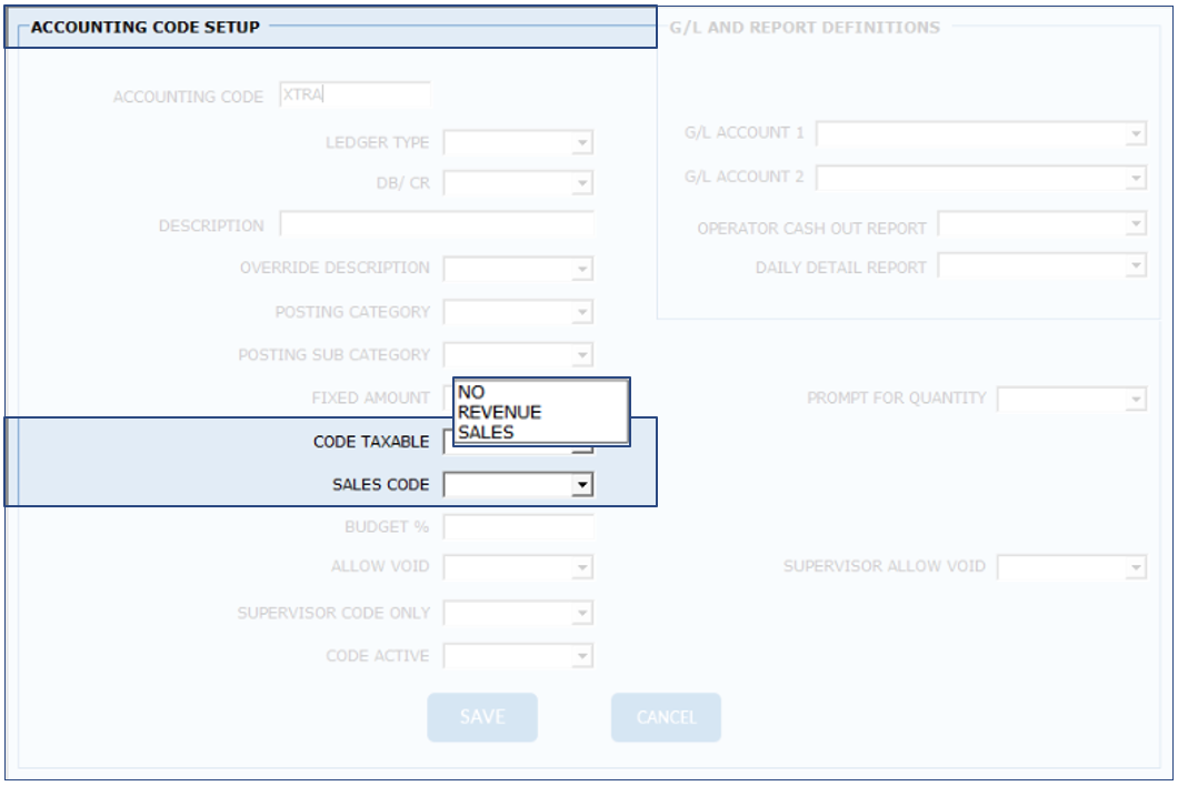 - Sales Tax are all other taxes. If Sales tax is selected, choose which sales tax to apply from the "Sales Code" field below.