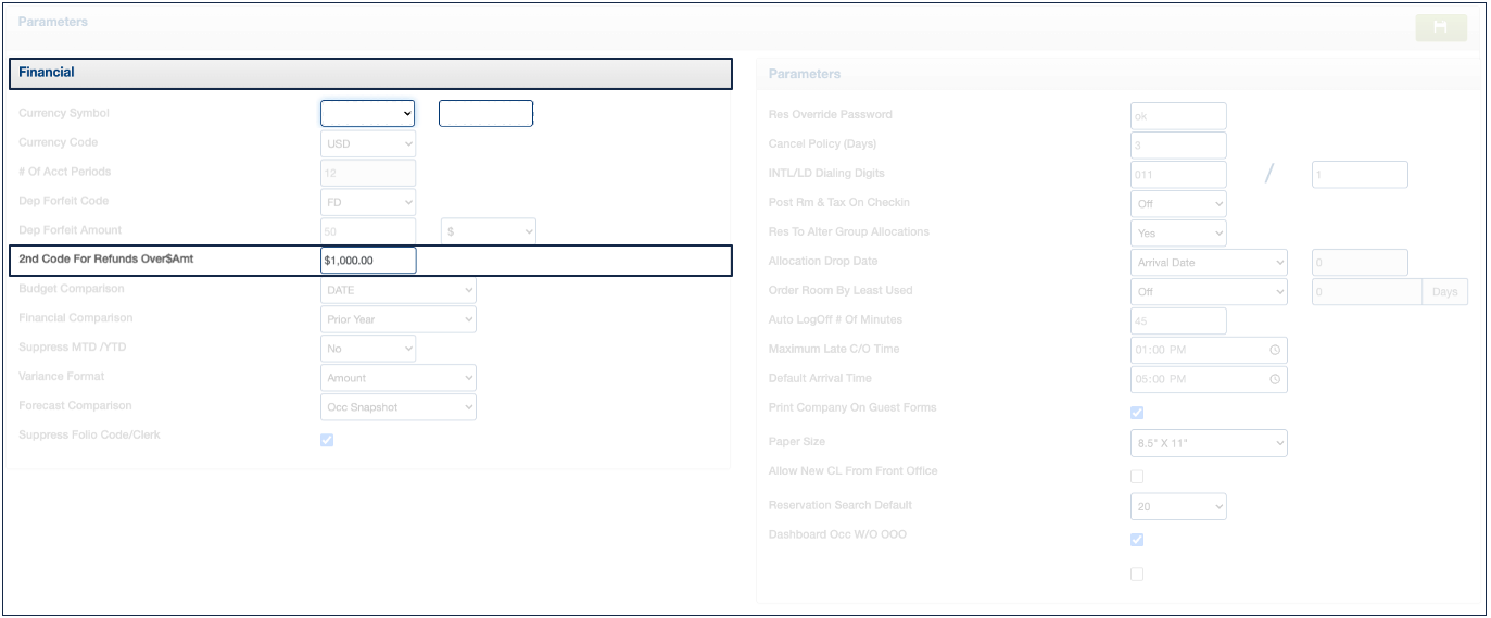 Path: Management > Property Settings > Parameters > Section "Financial" (left side)