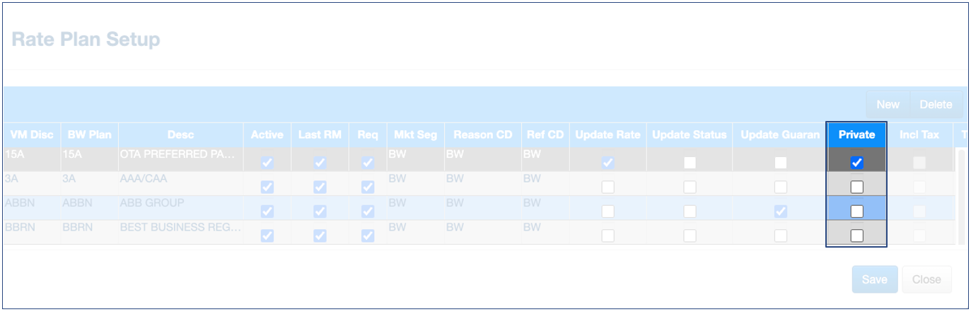 Marking a rate code "Private" means that the rate will not show on the registration card. This is used for guests who do not pay the hotel directly for the accomodation but go through a thrid party.