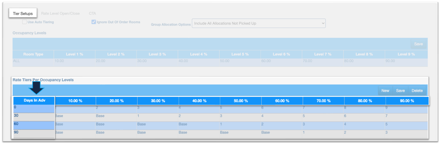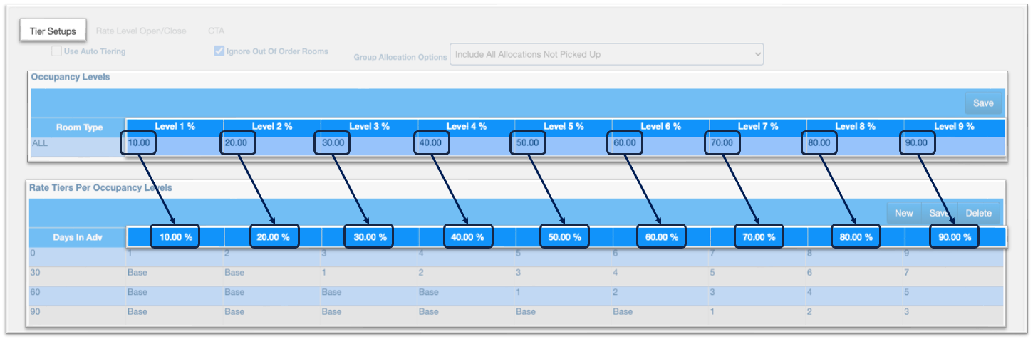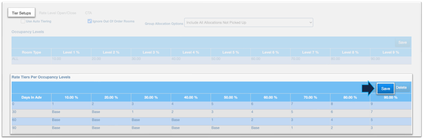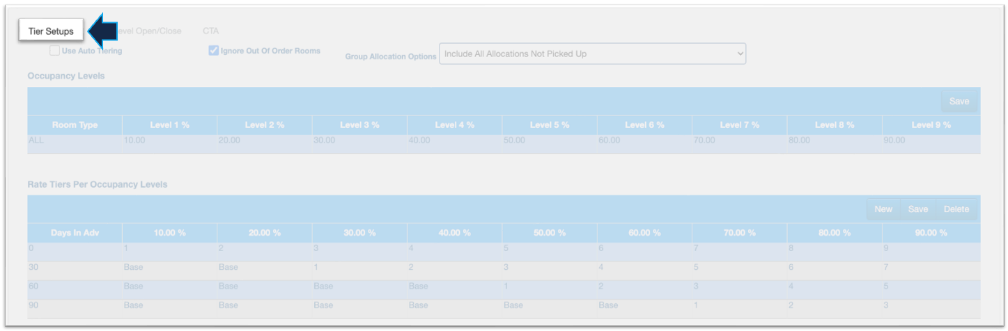 7. Now that you’ve set up the levels and occupancy rate triggers, you need to assign the tier rates that will be applied at each level.