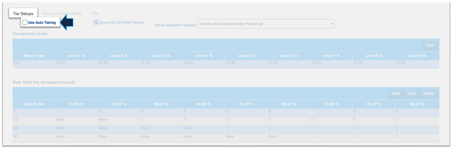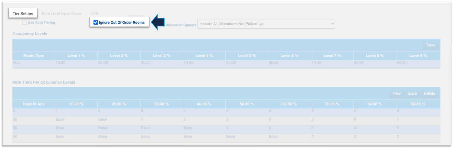 4. Auto-tiering is activated based on your occupancy rate, but it’s up to you to determine the trigger rate. One key decision is whether to include out-of-order rooms in this occupancy rate.