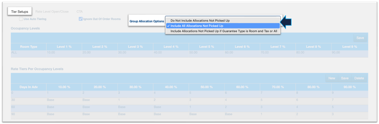 5. Another crucial decision regarding your occupancy rate is whether to include group allocations in your calculations. This choice can significantly influence your rate triggers, especially if you frequently work with group bookings. Including group allocations could lead to different occupancy rate calculations, which in turn affects when and how your auto-tiering thresholds are triggered.