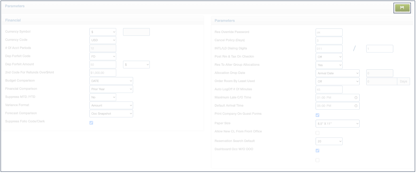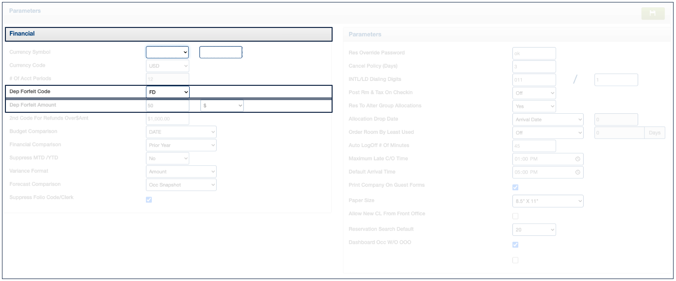 Path: Management > Property Settings > Parameters > Section "Financial" (left side)