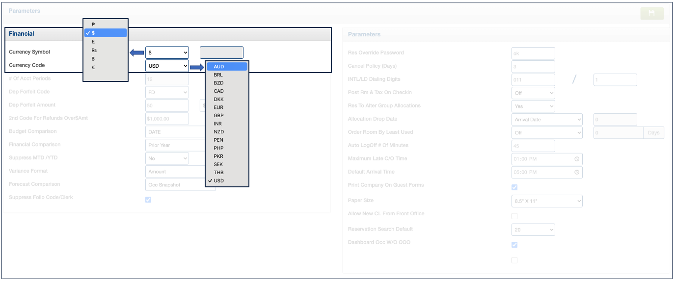 Each printed folio displays the User ID of the individual who posted the charge/payment. Here is where you can choose to conceal this ID on the folio. Path: Management > Property Settings > Parameters > Section "Financial" (left side) 1. Check the ...