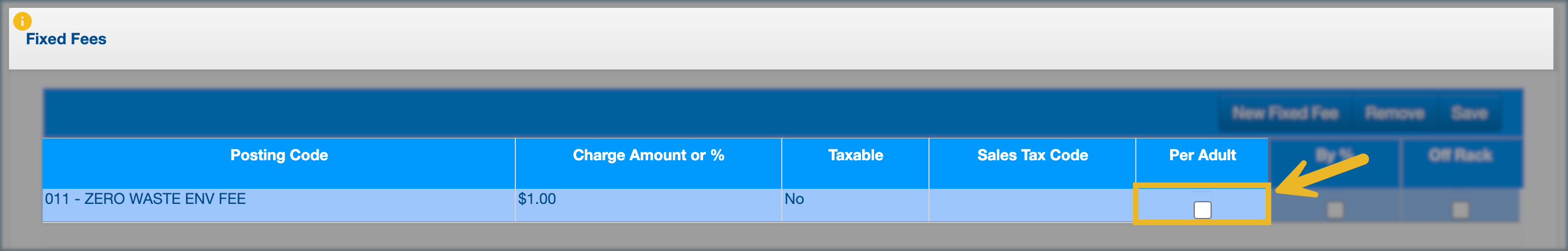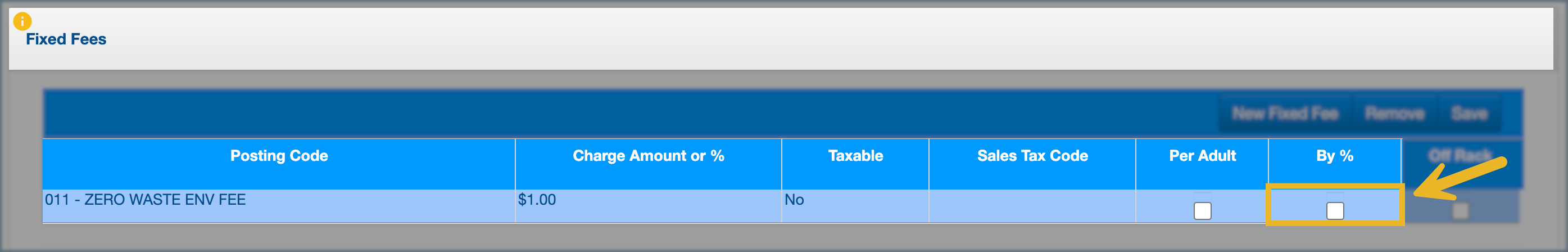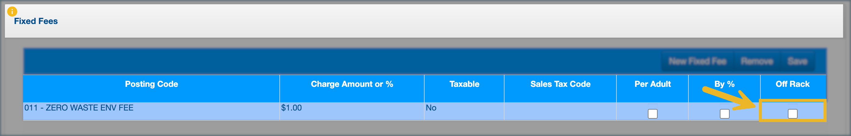 7. Select Off Rack if the fee should apply to rack rate instead of the posted rate.