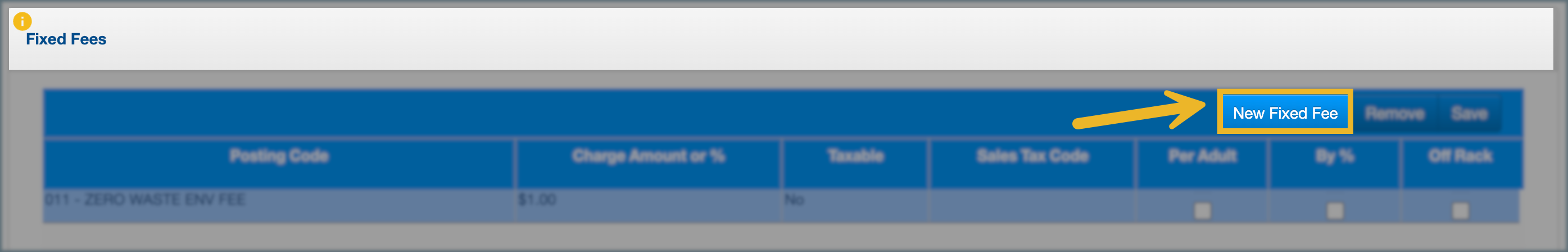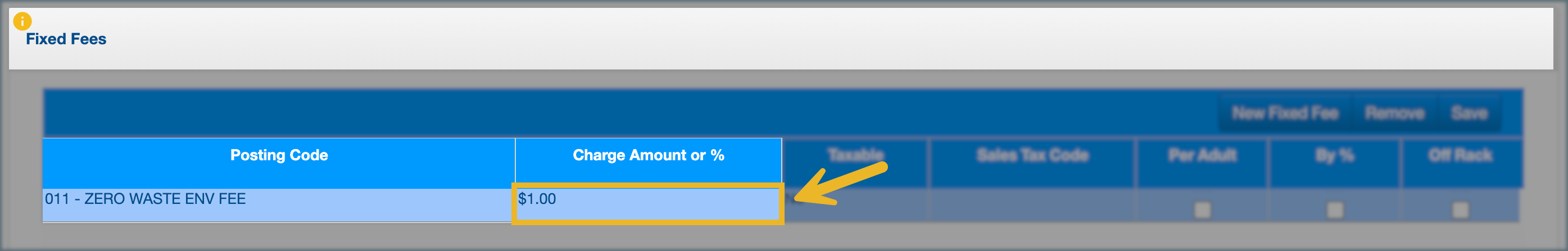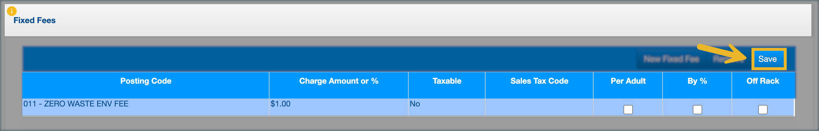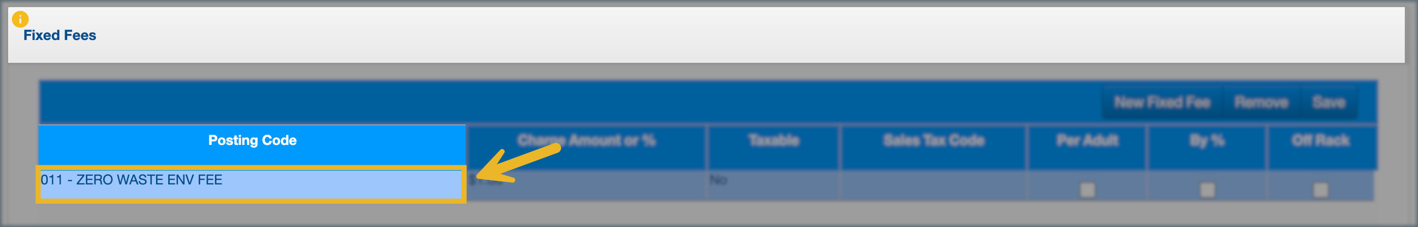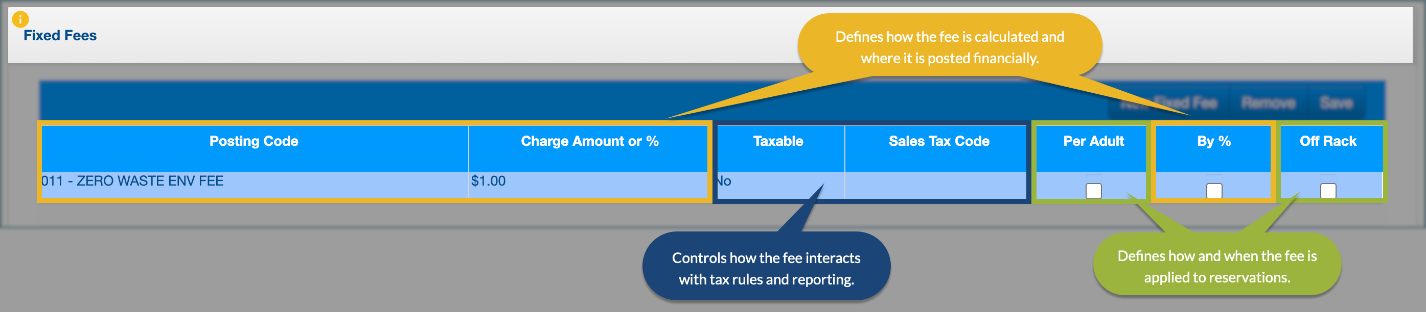 - Posting Code: Links the fee to the correct accounting category.