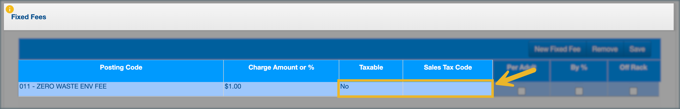 4. Set Taxable to indicate if the fee should be taxed. If applicable, select a Sales Tax Code.