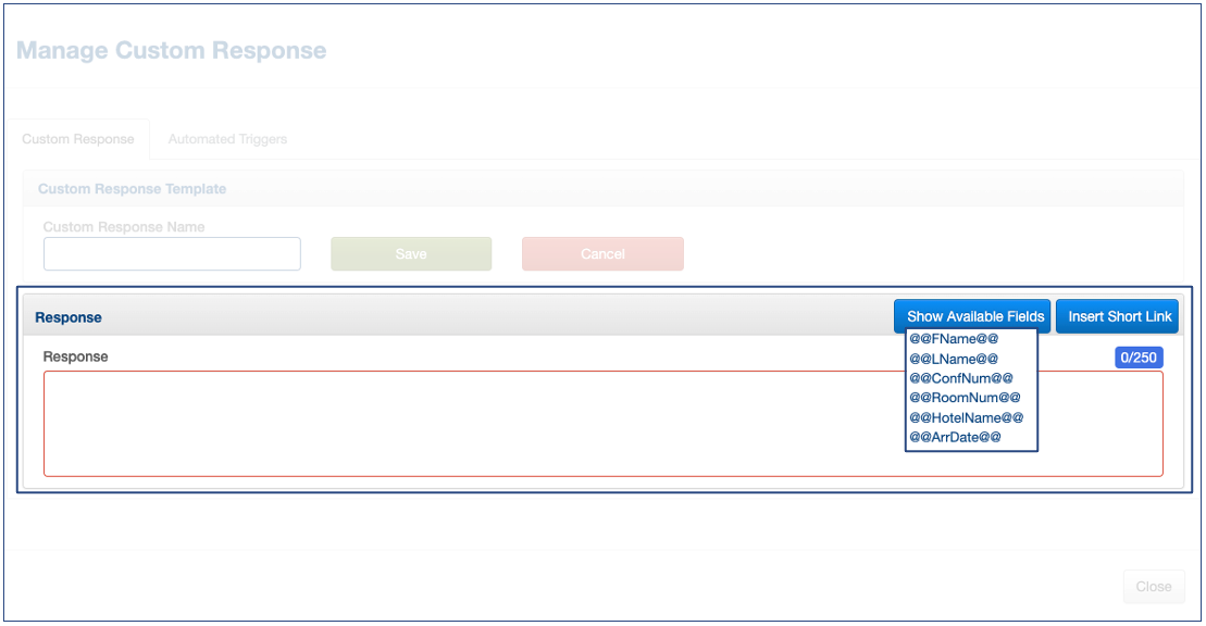 Path: Management > Interfaces > SMS Communication > Manage Custom Response (Toolbox on the right)