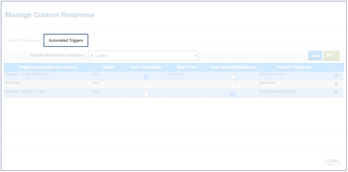 Instead of responding with the default response when a guest sends a text, this option can be setup to send specific messages that will be triggered by specific words.