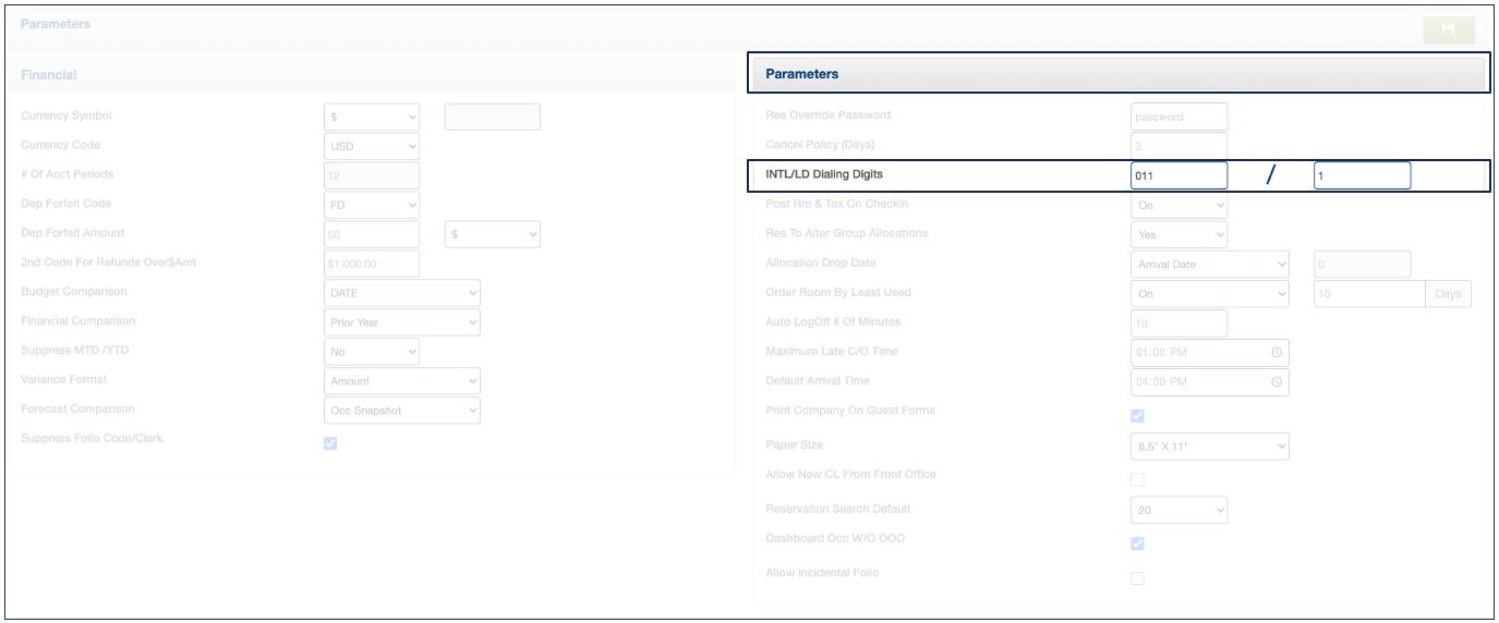 These configurations pertain to the International and Long Distance extensions, which come into play when the Image Call Accounting interface is in use.