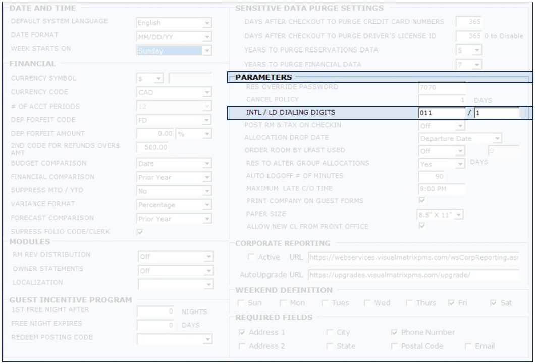 These settings relate to the International and Long Distance extensions used when interfacing with the Image Call Accounting system.