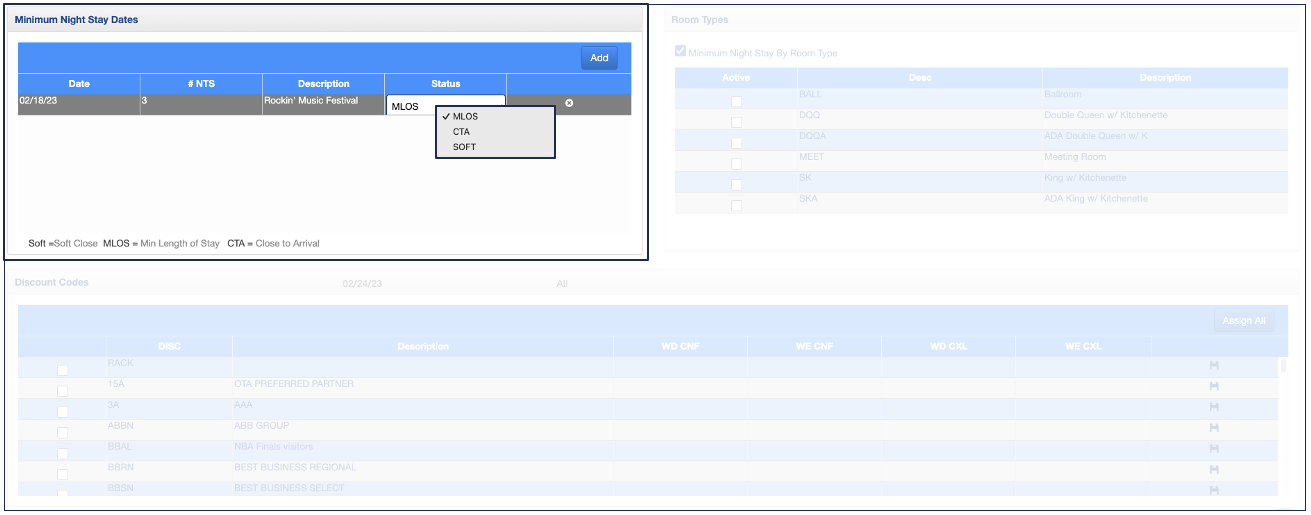 With Allocation Restrictions, you can apply rules such as Minimum Length of Stay (MLOS), Cut-Off Time for Arrival (CTA), and Soft / Hard Closes to a group’s allocation. These controls help manage how and when rooms are bookable via Member Web, ...