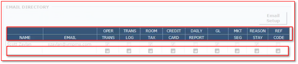 The Night Audit report Email settings would also need to be established in the Night Audit configurations once the recipients are set up here in Management