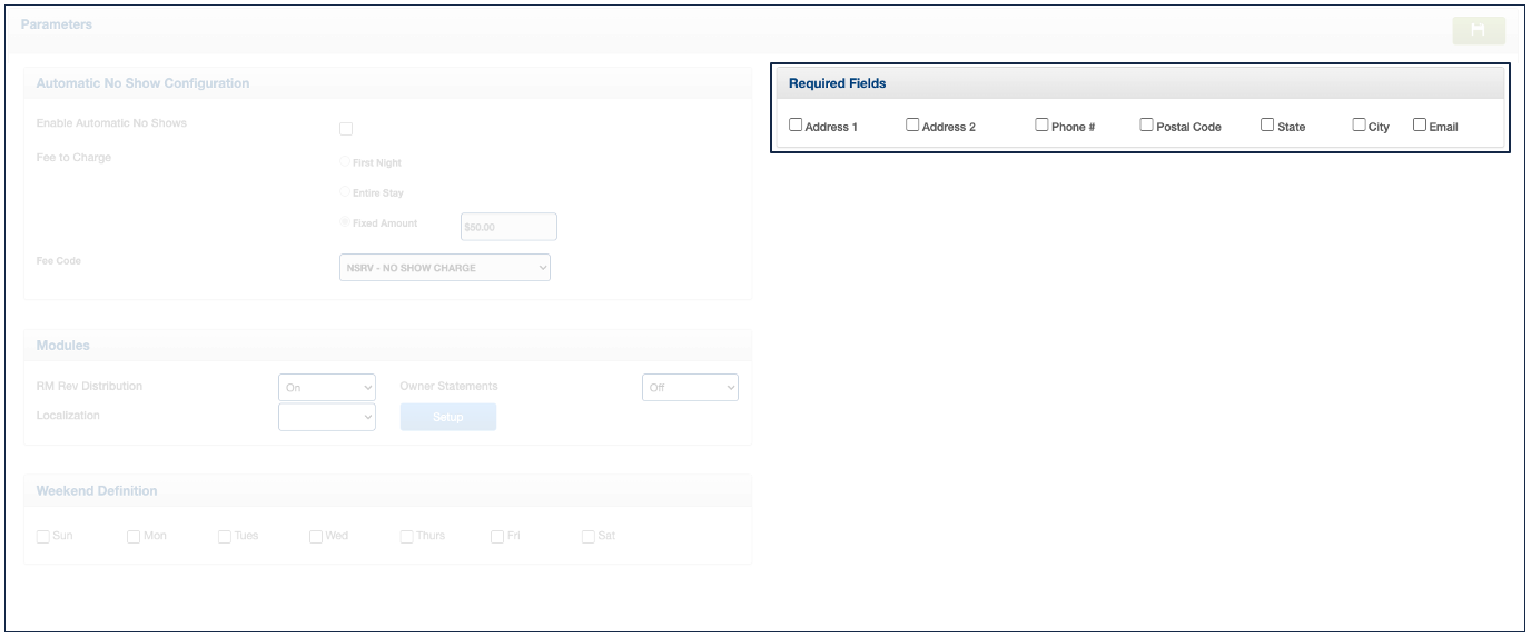 1. Click the checkbox for each field you deem crucial to include in every reservation. These fields encompass Address 1 and 2, Phone Number, Postal Code, State, City, and Email, totaling seven in all.