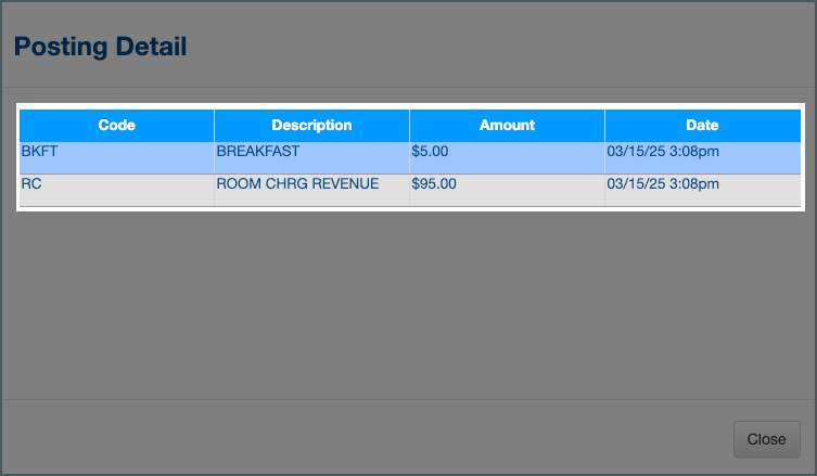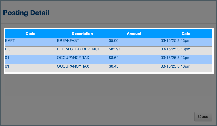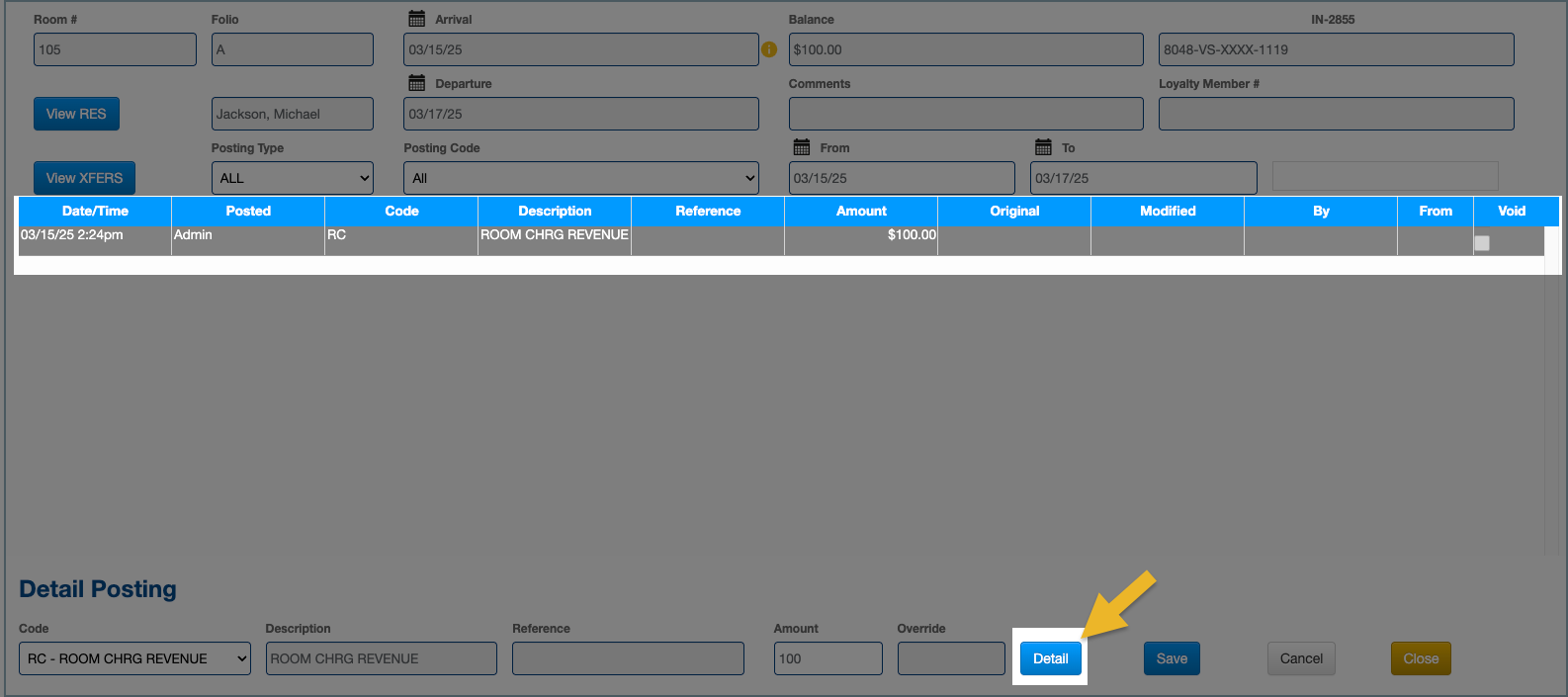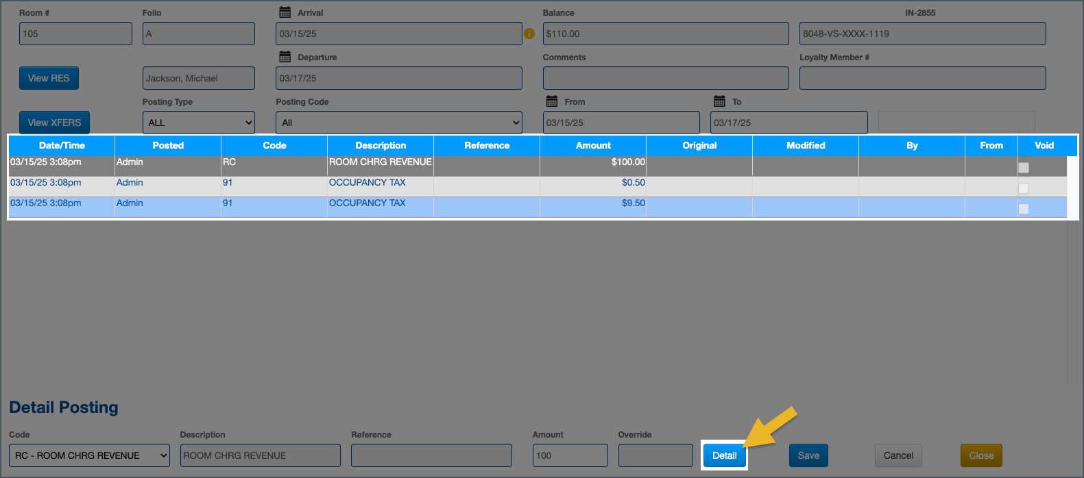9. When "Room & Tax" is posted, you can view the distribution by clicking the "Details" button.