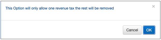 4. A message will popup to confirm that only one revenue tax is allowed in the Revenue Tax Code section.
