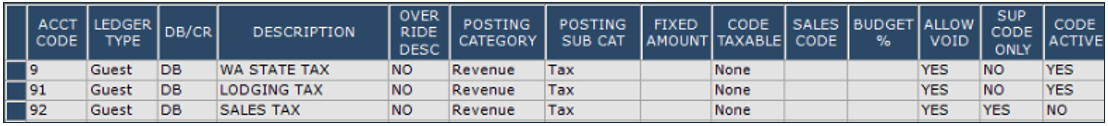 create the Accounting Code for the new tax. For organization purpuses, tax codes are setup as "9" codes in the accounting codes list, but any other code can be used.