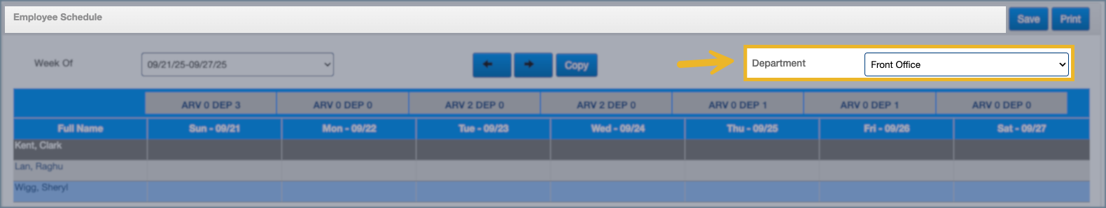 1. Select the Department you are scheduling — only users tied to this department will appear.