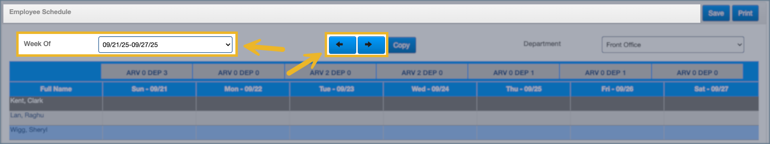 2. Choose the week you want to create or edit schedules for, or move forward/backward to another week.