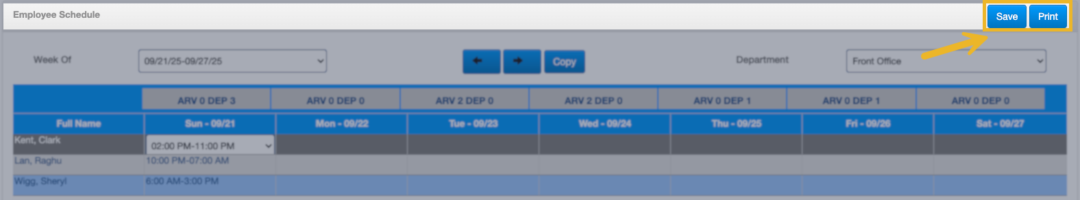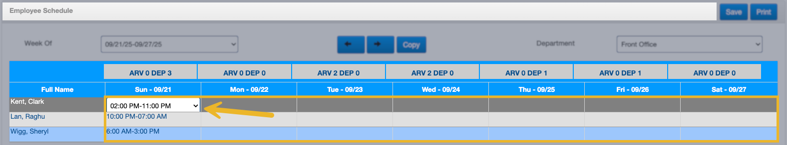 In this section, you’ll build a weekly work schedule by assigning shifts to employees for each day of the selected week.