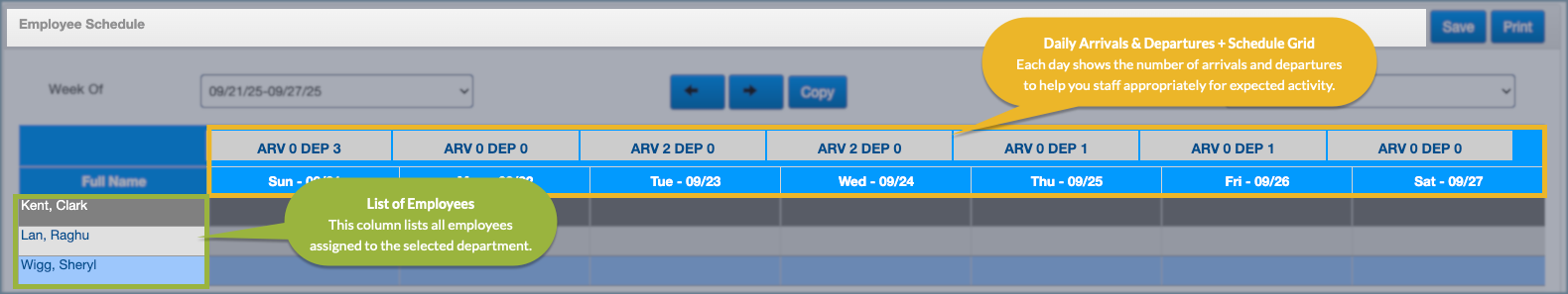 The staff weekly schedule helps you organize your team’s work assignments for each week so that all departments are fully staffed and responsibilities are clearly defined. Once created, team members can view their schedules directly from their Cloud dashboard, helping everyone stay informed and ready for their shifts.