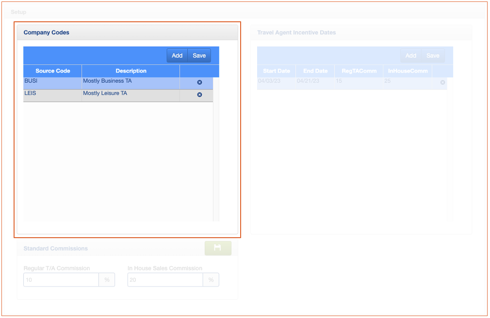Company Codes allows for the segmentation of the Travel Agents bookings such as for corporate or leisure accounts.