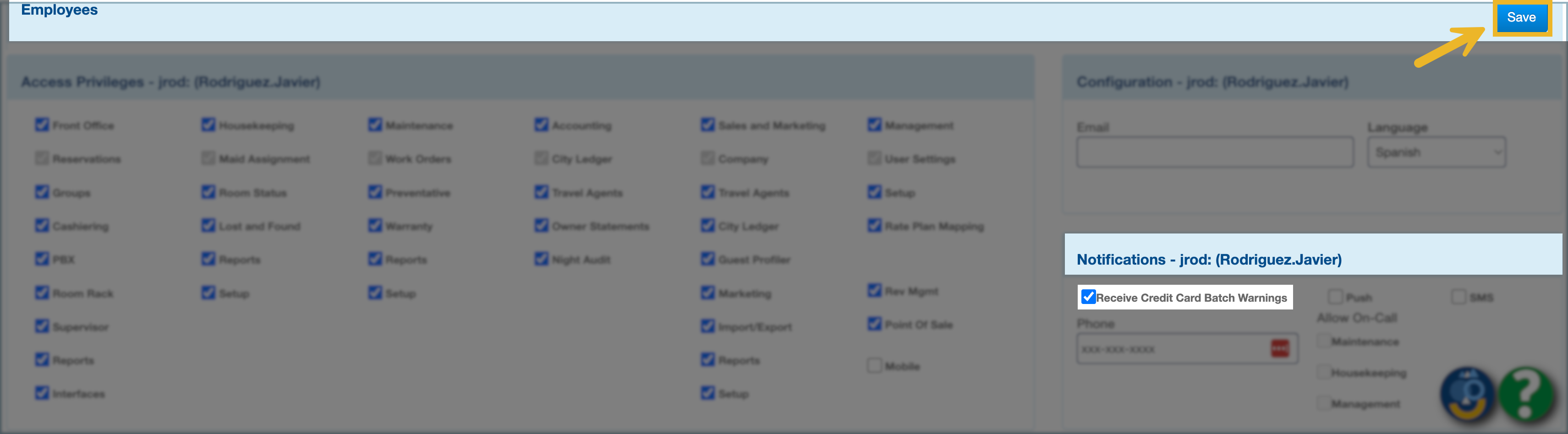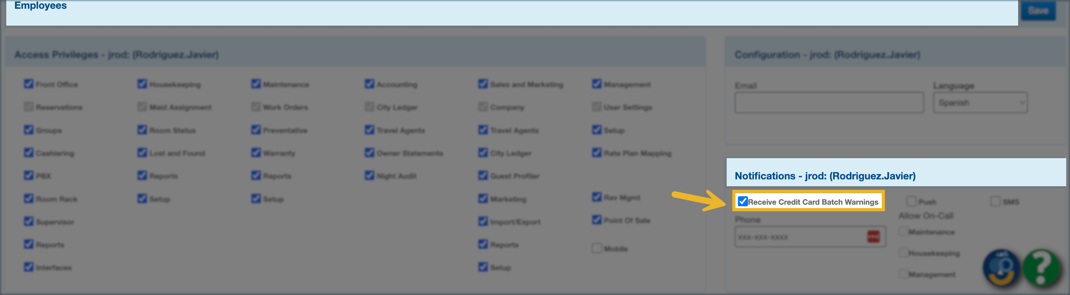 2. In the Notifications section, check Receive Credit Card Batch Warnings.