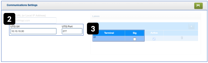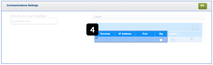 3. The Terminal # has to match the number for the same terminal in the UTG service. Only Shift4 can check this information. If you are using Signature Capture, the SIG box should be checked.