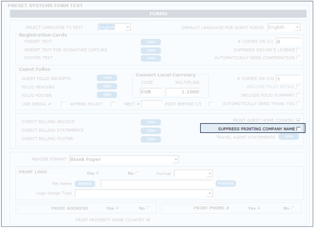 The Property Home Country shows at the top left of a form under the general address, as shown below. Path: Management > Setup > Property > Forms To hide or show the property Home Country, follow the next steps. At the bottom, check/uncheck the box ...