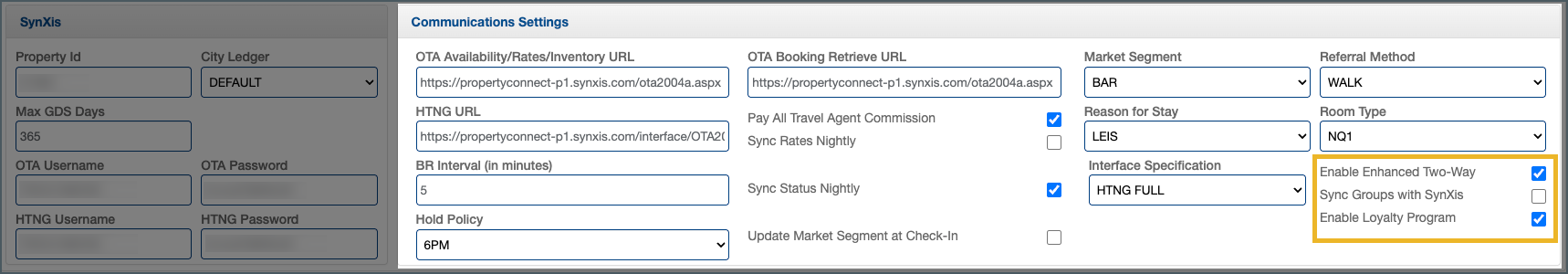 - Enable Enhanced Two-Way: Activate this option to synchronize all local reservations with SynXis.